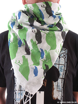 Scarfar från Skånes finest Svensson Jeans. Malmökonstnären Jonas Liveröd har hjälpt till med fåglar och kalhyggen och grejer… Vi fick en sneakpeak på Svensson´s höstkollektion för ett tag sen. Fantastiska nya denimstyles, hooded cardigans mm, och det hela ska dyka upp hos oss inom den närmsta framtiden.