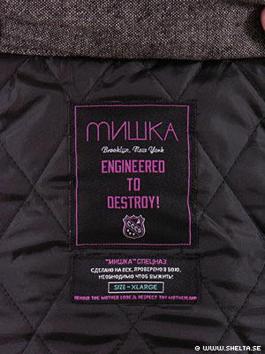 Äntligen har vi fått in vår något försenade leverans av Mishka. Folk har mailat oss som galna om Mishka och nu kan vi äntligen erbjuda detta Rysslandflörtande New York-märke och deras “Engineered To Destroy”-kollektion. I butiken idag, och på nätet så fort vi skrivit klart produkttexterna och mätt plaggen… Checka preview nedan… Det här är onda grejer alltså… Mishkas´s Selvedge Denim Jeans och en tvärtung fodrad jeansjacka dyker upp om ett par veckor…