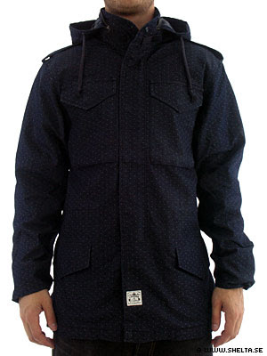 Denim M-65-jacka med små diskreta dots invävt i tyget.