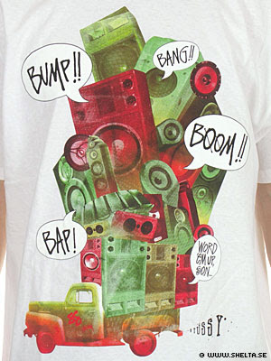 Grafisk mayhem när the legendary Stussy bombarderar Shelta med t-shirts. Detaljerad och färgstarkt! “It ain´t where ya from, is where ya at…”