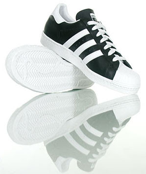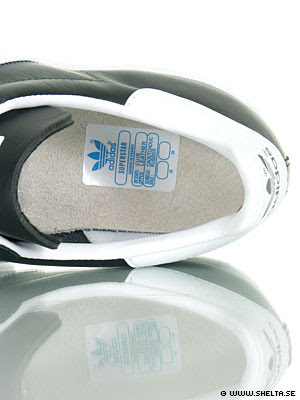 Adidas första Superstar på ett bra tag är en påkostad historia i svart premiumskinn med klassisk shelltoe och innersula i grå mjuk suede. Fina skodon för fint folk.