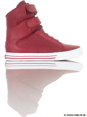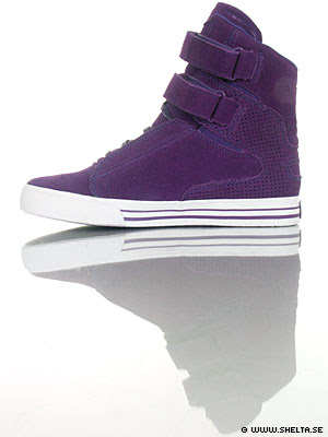 Supra låter Long Beach´s egen skateboardgud Terry Kennedy designa ännu en high-top men denna gång avsedd för damer. TK Society är en sedvanligt superhög lyxig sneaker, den ena i vinrött läder och den andra i lila suede. Get yo kicks on!