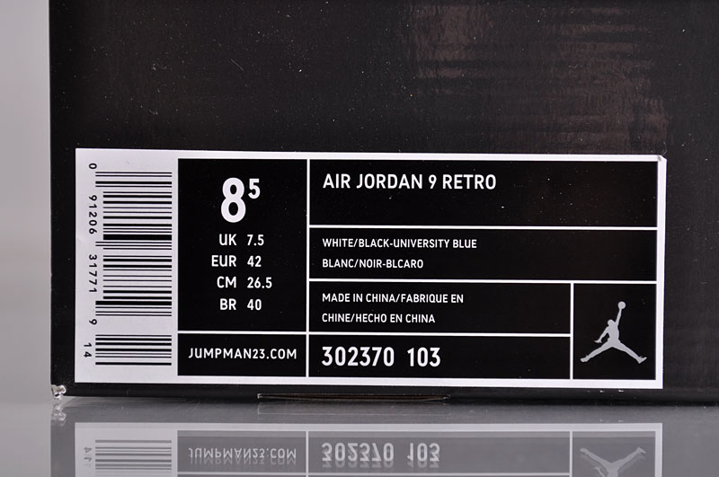Förutom den vita läder uppern som möter den blåa midsolen har dessa skor en mycket speciell och detaljerad sula med text skrivet på språk som bland annat, tyska, franska, spanska italienska, japanska och ryska. 23 broderat bak på hälen vilket står för Michaels nummer.